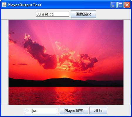 左がメインプログラム「PlayerOutputTest.jar」で、画像を選択し出力する